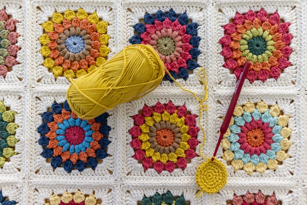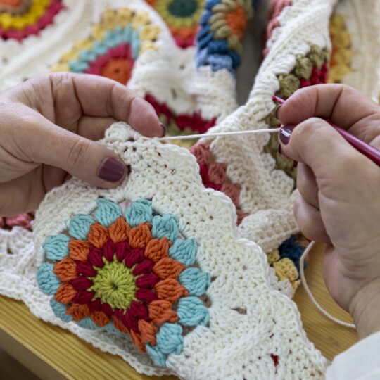 From an early age, she showed curiosity for crochet when she watched her grandmother and great-aunt at work. With them she learned the basic stitches and, later, around the age of 15, she learned knitting with a neighbor, when she made her first sweater. Over the years she explored several manual techniques, such as sewing, Arraiolos, macramé, cross stitch, half stitch and embroidery.